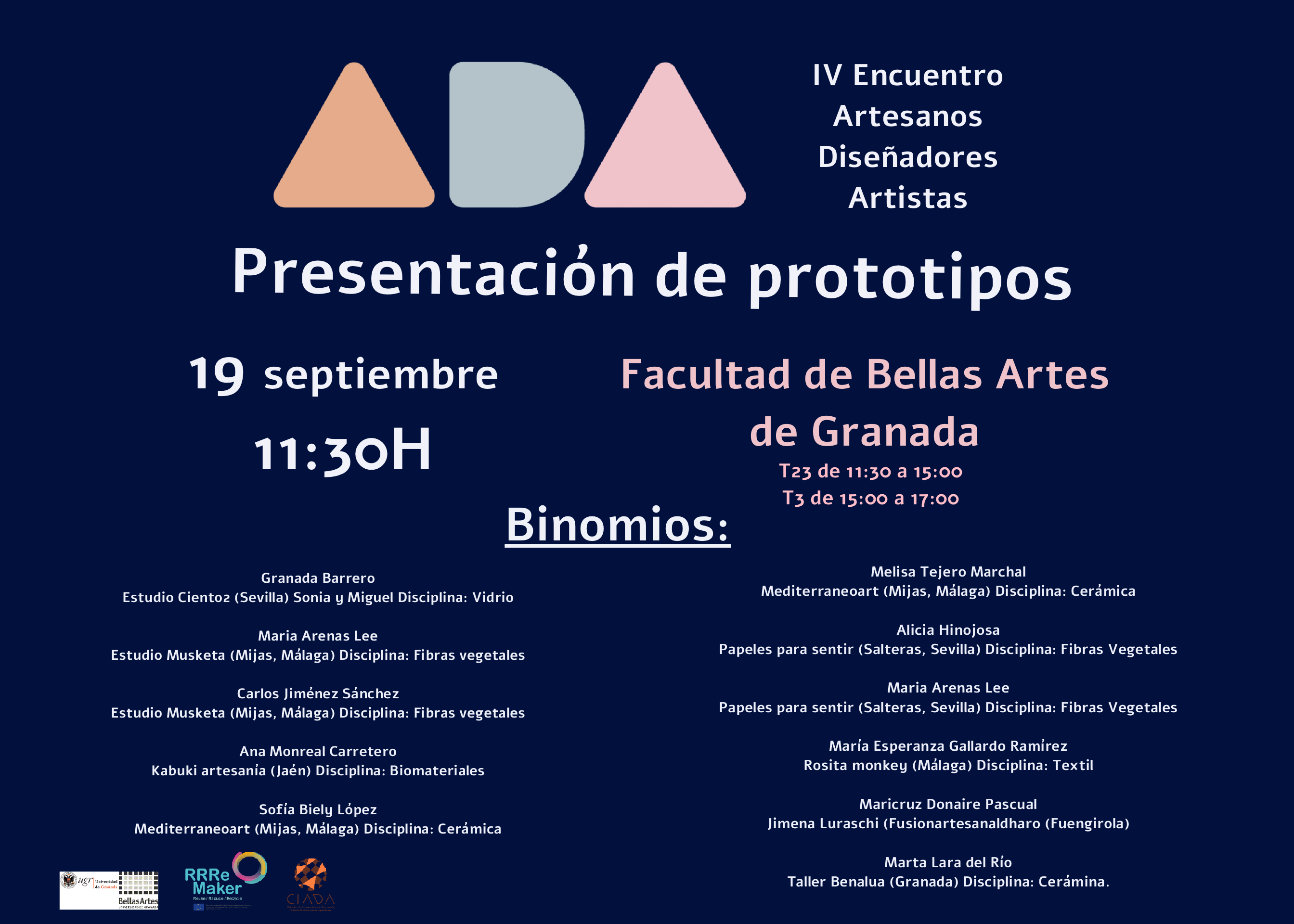 Si te interesa participar en una experiencia colaborativa trabajando con un artesano para producir un prototipo desde la experimentación, la creatividad y el trabajo colaborativo, te invitamos a participar en la próxima edición del proyecto ADA. Podrás compartir tu conocimiento y trabajar con artesanos de Andalucía en diferentes disciplinas artesanales. ADA está auspiciado por la Cátedra de Innovación en Artesanía Diseño y Arte contemporáneo de la Universidad de Granada.