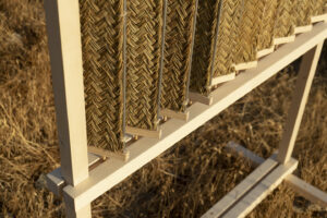 Nur, término árabe para referirse a la luz, nace a partir de un estudio sobre el esparto y los usos tradicionales de esta fibra en la cultura mediterránea. Entre ellos destacan las persianas de esparto, piezas humildes y funcionales utilizadas durante siglos en el sur de España para proteger las ventanas del sol. Más allá del carácter práctico, estas persianas ofrecían una forma sutil de modelar la luz, creando espacios en penumbra y zonas de claridad tamizada.