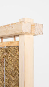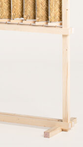 Inspirados en estas referencias, se plantea una reinterpretación contemporánea de la persiana tradicional en forma de biombo separador. La pieza combina la calidez de la madera con la textura del esparto procedente de la Sierra de Mijas. Mediante un sistema de lamas móviles permite variar la cantidad de luz que deja pasar, adaptándose a distintos ambientes.