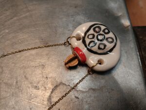 Todo comenzó tras nuestra primera videollamada con Jimena, cuando nos contó su pasión por la cerámica. Surgió entonces la idea de crear juntos un pequeño ungüentario artesanal, combinando su trabajo con el nuestro. Jimena nos mostró algunas de sus piezas, y enseguida supimos que sería un proyecto especial: ella elaboraría los recipientes en cerámica, y nosotros diseñaríamos las cadenas y los tapones en nuestro taller de joyería.